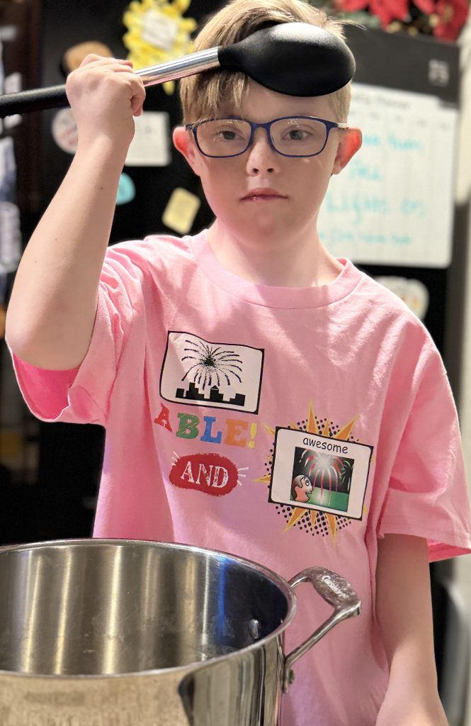 Someone in our community who communicates through pointing, facial expressions, and hand movements helped guide this clothing line. They didn’t need to explain what they were imagining.